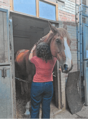 Animé dans un centre équestre par une monitrice d’équitation formée au handicap, cet atelier hebdomadaire d’équithérapie accueille des usagers de la psychiatrie, hospitalisés ou non, et des professionnels du pôle. De façon transversale, ils découvrent ensemble les bienfaits de l’activité. Différents enjeux thérapeutiques et une horizontalité dans la prise en soins sont facilités par le pluri professionnalisme des participants (infirmière, aides-soignants, psychomotriciennes, secrétaire d’accueil). Intermédiaire relationnel entre usager et soignant, le cheval est un vecteur de communication. Contenant, sans jugement, il génère gain d’estime de soi, expression des émotions, confiance en soi, en l’autre et engage les sphères motrices et cognitives. Les médiations thérapeutiques en extérieur favorisent l’alliance thérapeutique et le partage des émotions pour mieux se comprendre et avancer vers le rétablissement.